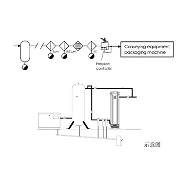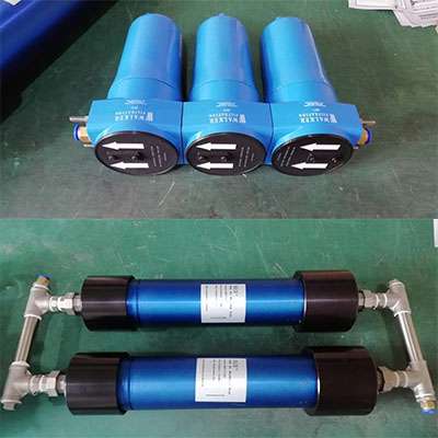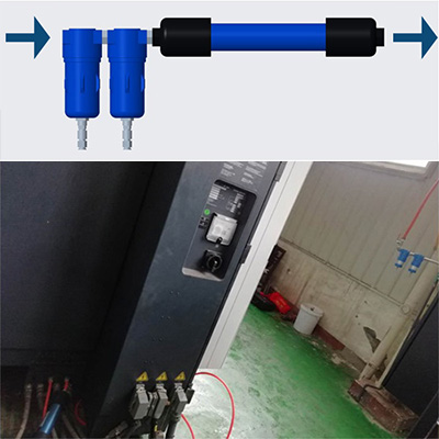 我們的技術(shù)同事根據(jù)這種特殊情況,專門為客戶設(shè)計了一套兩支CMD TM3000并聯(lián)的方案,同時,因為客戶的設(shè)備上進氣口之前沒有任何過濾措施,客戶讓我們幫忙選了一套三級過濾器來提高進入S