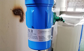 某些用戶現(xiàn)場(chǎng)的真空泵頻繁的出現(xiàn)故障,經(jīng)常需要維修,主要問題是當(dāng)真空系統(tǒng)工作時(shí),一些刀具的冷卻液甚至是部分的加工碎屑一同被吸入到真空系統(tǒng)中,而在真空管線中,只有真空罐有一點(diǎn)沉降作用,整個(gè)管路中沒有過濾設(shè)備,吸入的水分是以氣溶膠狀態(tài)存在,鐵屑、液體最后就沿著管線到了真空泵內(nèi)腔中,導(dǎo)致里面銹蝕,造成真空泵