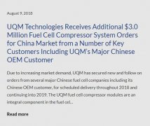 據(jù)美國(guó)UQM公司官方網(wǎng)站報(bào)道,當(dāng)?shù)貢r(shí)間8月13日,美國(guó)UQM技術(shù)公司宣布,其收到了新客戶及現(xiàn)有客戶(包括其主要的中國(guó)原始設(shè)備制造商客戶)關(guān)于新型車用燃料電池空氣壓縮機(jī)系統(tǒng)的價(jià)值約30